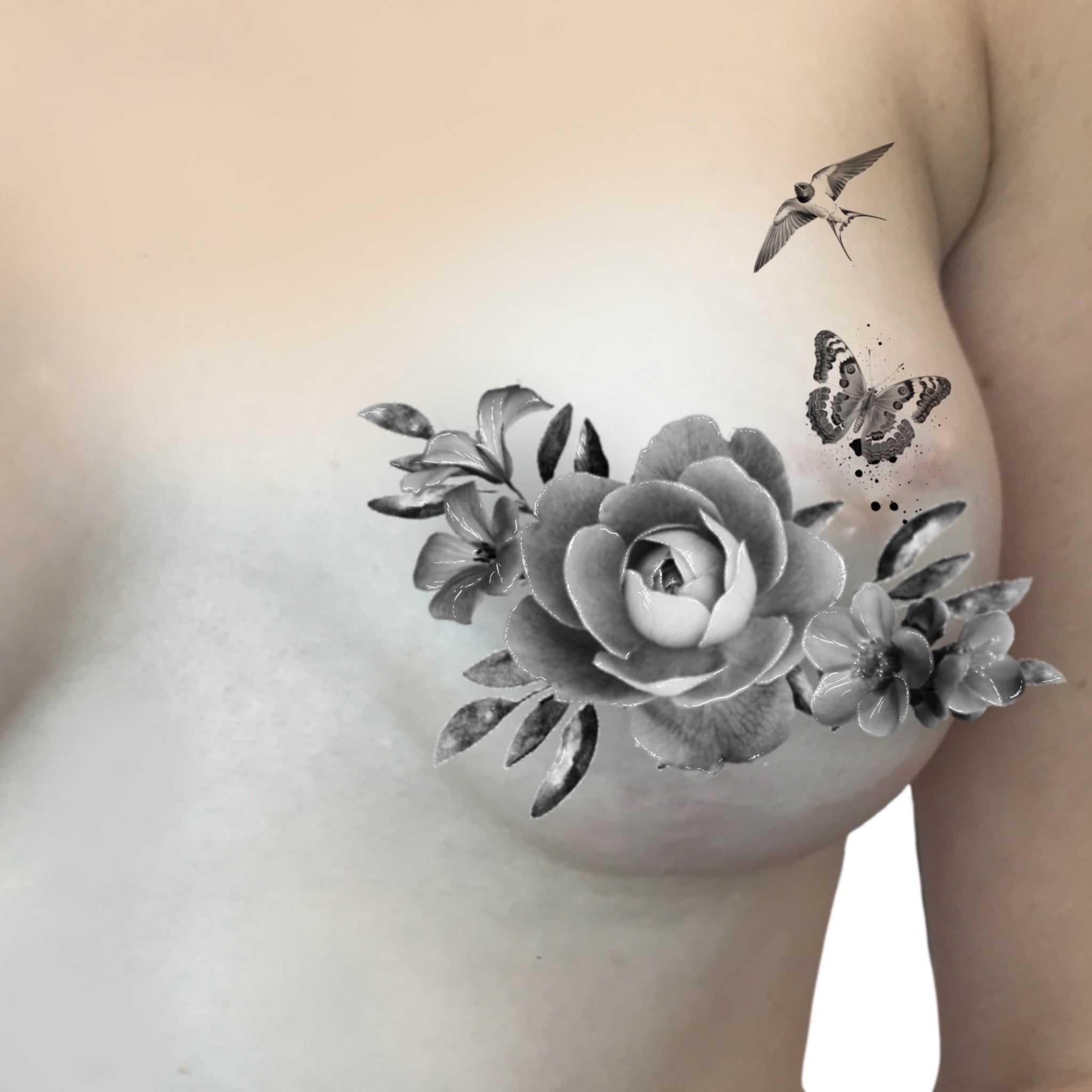 Our A5 Matte floral colour and greywash tattoo options are a beautiful way to soften, disguise, or reclaim areas affected by scarring — whether from breast mastectomy surgery, tummy tucks, or other surgical procedures. Thoughtfully designed and carefully placed, floral tattoos can help draw the eye away from scars while honouring the body’s healing journey.