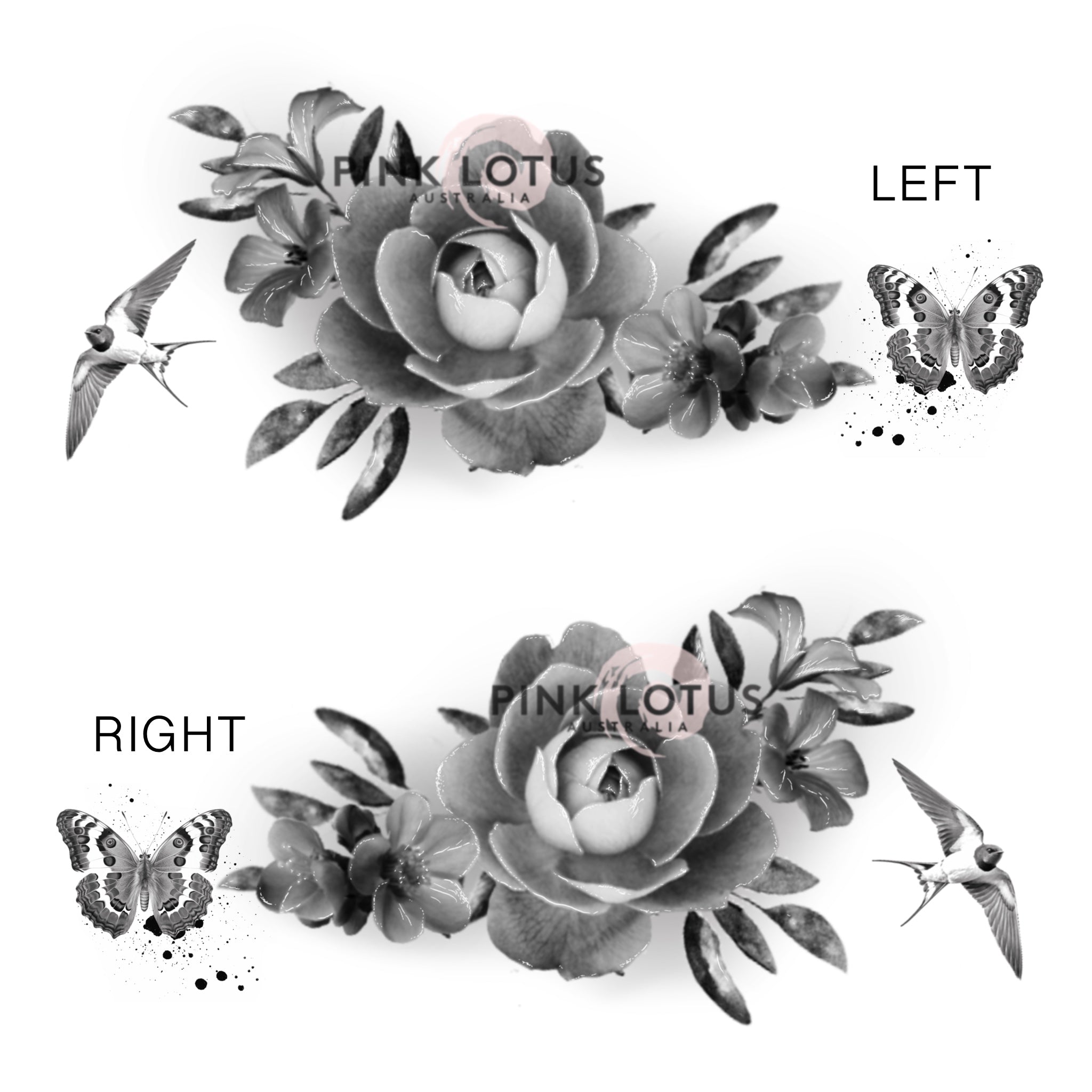 A5 Floral Colour & Greywash Tattoo Options